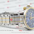 Синий циферблат с классическими индексами и стрелками дополнен люминесцентным покрытиемЛюминесцентное покрытиеПозволяет считывать показания времени в темноте. Производители наносят на стрелки, часовые индексы, безель или поверхность циферблата светонакопительный состав, дающий холодное свечение. для удобства использования в условиях низкой освещённости. Модель оснащена функцией хронографа, позволяющим измерять секунды, минуты и 1/10 секунды. Окошко даты, расположенное между 4 и 5 часами, добавляет практичности. БезельБезельВнешний ободок, закрепляющий стекло. В спортивных часах так называется поворотное кольцо с делениями на циферблате, выполняет роль таймера – замеряет отрезки времени на шкале. Неподвижный безель – элемент декора. Однонаправленно вращающийся безель на дайверских часах позволяет фиксировать моменты погружения и выныривания на поверхность. с PVD-покрытиемPVDУльтратонкое покрытие наносится в технике вакуумного напыления, сочетает в себе нитрид титана особой прочности со слоем золота или оксида хрома. Несёт в себе декоративную или защитную функцию..