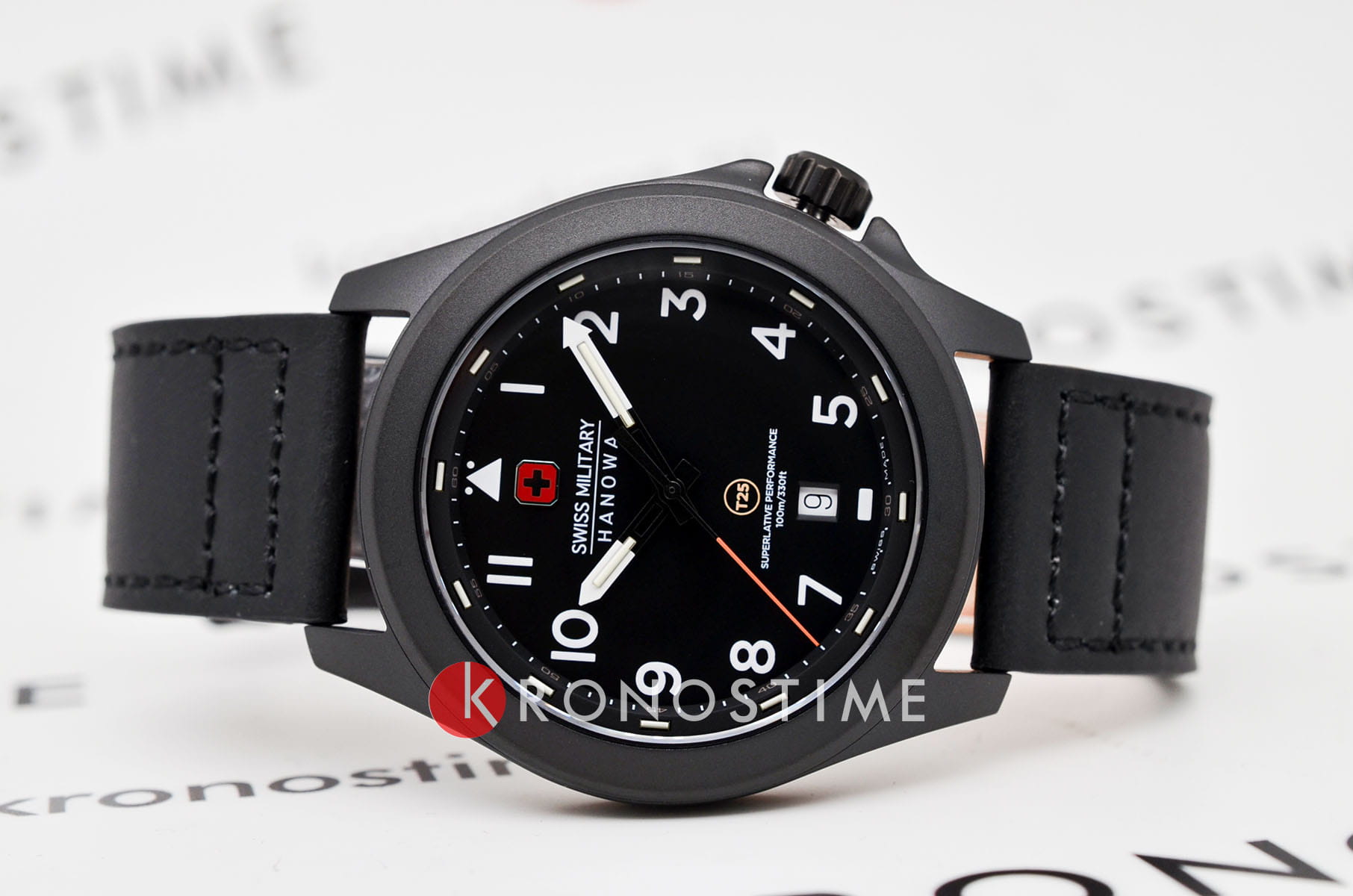 Мужские кварцевые часы Swiss Military Hanowa — это прочный и стильный аксессуар, вдохновлённый классическими полевыми моделями. Корпус диаметром 42 мм выполнен из нержавеющей стали с PVD-покрытиемPVDУльтратонкое покрытие наносится в технике вакуумного напыления, сочетает в себе нитрид титана особой прочности со слоем золота или оксида хрома. Несёт в себе декоративную или защитную функцию.. Циферблат чёрного цвета оформлен индексами и стрелками. Циферблат защищён сапфировым стекломСапфировое стеклоПрочный и надёжный материал из кристалла сапфира синтетического происхождения, характеризующийся особой твёрдостью и устойчивостью к царапинам и повреждениям.. Механизм — швейцарское кварцевое движение Ronda 515 (Swiss Made). Часы оснащены чёрным кожаным ремешком с матовой текстурой на классической пряжке. Водонепроницаемость 100 м позволяет использовать часы для плавания и повседневного ношения. Идеальный выбор для тех, кто ценит швейцарское качество и надёжность.