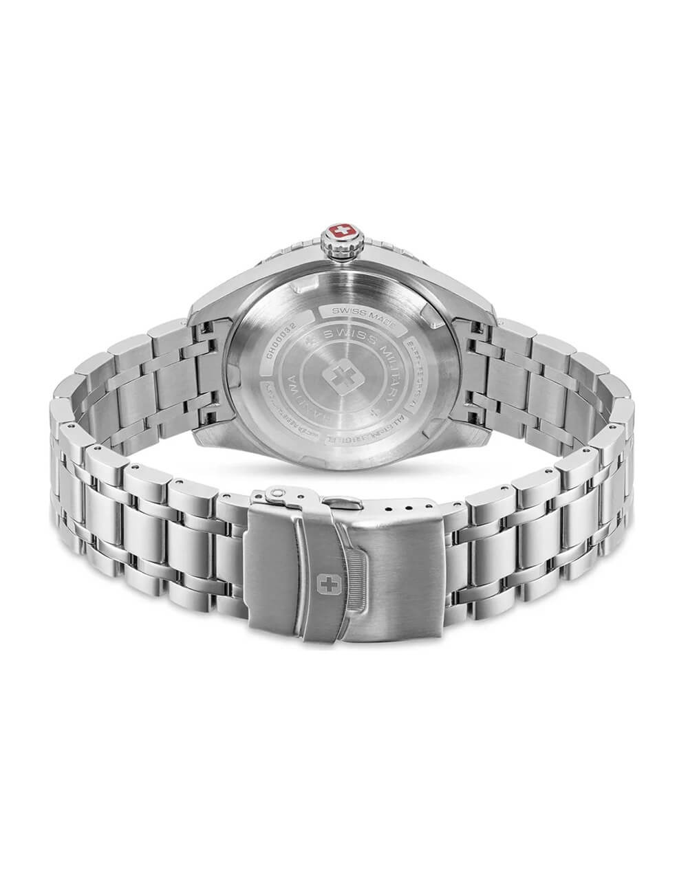 Мужские швейцарские часы с сапфировым стекломСапфировое стеклоПрочный и надёжный материал из кристалла сапфира синтетического происхождения, характеризующийся особой твёрдостью и устойчивостью к царапинам и повреждениям. Swiss Military Hanowa SMWGH0003204, кварцевый механизм с высокой точностью. Сапфировое стеклоСапфировое стеклоПрочный и надёжный материал из кристалла сапфира синтетического происхождения, характеризующийся особой твёрдостью и устойчивостью к царапинам и повреждениям. устойчивое к появлению царапин, обладающее высокой прозрачностью. Корпус часов изготовлен из стали. Окошко даты находится в положении 3 часа. Стрелки и метки с люминесцентным покрытиемЛюминесцентное покрытиеПозволяет считывать показания времени в темноте. Производители наносят на стрелки, часовые индексы, безель или поверхность циферблата светонакопительный состав, дающий холодное свечение.. Класс водозащиты: 100 метров, позволит плавать, нырять и заниматься другими водными видами спорта. Стальной браслет на раскладной застёжкеРаскладная застёжкаТакой тип застёжки используется только на браслетах из металла. Она никогда не раскрывается полностью, происходит разделение на 2 и более частей. Раскладывающая застёжка снизит вероятность потери часов к минимуму..