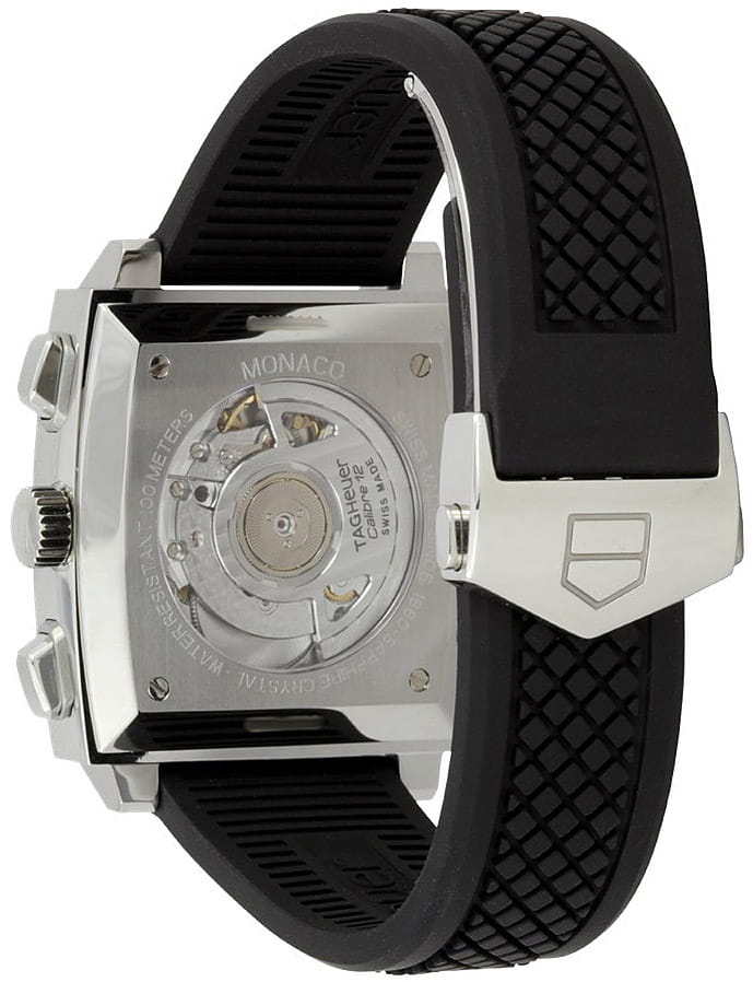Часы TAG Heuer Monaco CAW2114.FT6021 — это стильное сочетание современного дизайна и часового мастерства. Корпус из нержавеющей стали диаметром 39 мм защищён сапфировым стекломСапфировое стеклоПрочный и надёжный материал из кристалла сапфира синтетического происхождения, характеризующийся особой твёрдостью и устойчивостью к царапинам и повреждениям., что обеспечивает отличную видимость и защиту от царапин. Черный циферблат с хронографомХронографФункция позволяет измерять отрезки времени с особой точностью: часы, минуты, секунды. Верным признаком хронографа является наличие на циферблате 3 дополнительных окошек-счётчиков. и секундомеромСекундомерСекундоме́р — прибор, способный измерять интервалы времени с точностью до долей секунды.. Люминесцентные стрелки и меткиЛюминесцентное покрытиеПозволяет считывать показания времени в темноте. Производители наносят на стрелки, часовые индексы, безель или поверхность циферблата светонакопительный состав, дающий холодное свечение. обеспечивают превосходную читаемость даже в условиях низкой освещённости. Эти элегантные часы с калибром Calibre 12, который обеспечивает точность хода. Браслет из каучука оснащён раскладной застёжкойРаскладная застёжкаТакой тип застёжки используется только на браслетах из металла. Она никогда не раскрывается полностью, происходит разделение на 2 и более частей. Раскладывающая застёжка снизит вероятность потери часов к минимуму. с кнопкой, что обеспечивает удобство и надёжность. Водонепроницаемость до 100 метров делает часы подходящими для плавания и активного использования. TAG Heuer Monaco CAW2114.FT6021 — это выбор для тех, кто ценит утончённость, стиль и высочайшее качество.
