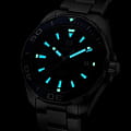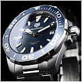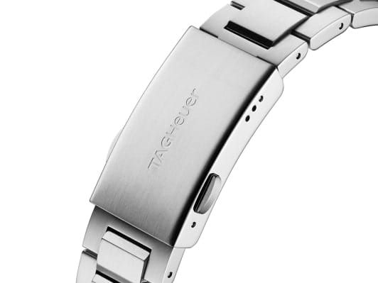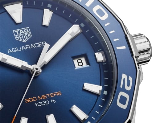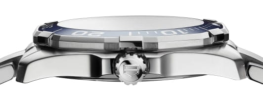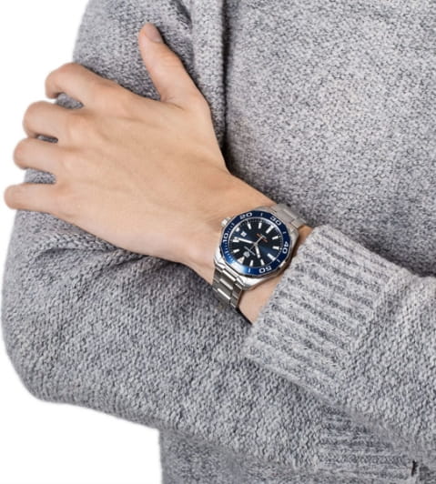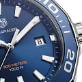 TAG Heuer Aquaracer WAY101C.BA0746 — элегантные мужские часы, сочетающие в себе стиль и функциональность. Корпус диаметром 43 мм выполнен из нержавеющей стали, а безельБезельВнешний ободок, закрепляющий стекло. В спортивных часах так называется поворотное кольцо с делениями на циферблате, выполняет роль таймера – замеряет отрезки времени на шкале. Неподвижный безель – элемент декора. Однонаправленно вращающийся безель на дайверских часах позволяет фиксировать моменты погружения и выныривания на поверхность. также изготовлен из стали и алюминия с PVD-покрытиемPVDУльтратонкое покрытие наносится в технике вакуумного напыления, сочетает в себе нитрид титана особой прочности со слоем золота или оксида хрома. Несёт в себе декоративную или защитную функцию., что придаёт модели дополнительную прочность и долговечность. Синий циферблат с солнечным узором оснащён накладными часовыми метками и стрелками с люминесцентным покрытиемЛюминесцентное покрытиеПозволяет считывать показания времени в темноте. Производители наносят на стрелки, часовые индексы, безель или поверхность циферблата светонакопительный состав, дающий холодное свечение., обеспечивающим отличную читаемость в любых условиях освещения. Часы оснащены точным кварцевым механизмом, гарантирующим надёжное отображение времени. Функциональность включает индикацию часов, минут, секунд и даты. Сапфировое стеклоСапфировое стеклоПрочный и надёжный материал из кристалла сапфира синтетического происхождения, характеризующийся особой твёрдостью и устойчивостью к царапинам и повреждениям. с антибликовым покрытиемАнтибликовое покрытиеСлой оксида металла в 0,13-0,3 микрон, благодаря которому стекло часов не бликует и не отражает свет. Антибликовое покрытие уменьшает отражение света в 10 раз, обеспечивая отличную читаемость показателей циферблата. обеспечивает защиту от царапин и превосходную читаемость. Браслет из нержавеющей стали оснащён раскладной застёжкойРаскладная застёжкаТакой тип застёжки используется только на браслетах из металла. Она никогда не раскрывается полностью, происходит разделение на 2 и более частей. Раскладывающая застёжка снизит вероятность потери часов к минимуму. с кнопками для дополнительной безопасности. Водозащита до 300 метров (30 бар) делает модель подходящей для дайвинга и других водных видов спорта.