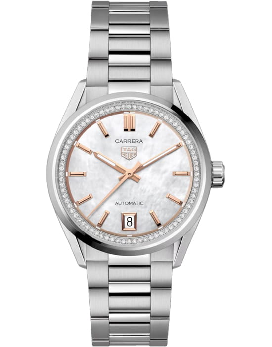 Утончённые часы TAG Heuer Carrera Date WBN231C.BA0001 созданы для стильных и смелых женщин. Механический механизм (автоматический калибр) с высокой точностью производится целиком в стенах компании. Сапфировое стеклоСапфировое стеклоПрочный и надёжный материал из кристалла сапфира синтетического происхождения, характеризующийся особой твёрдостью и устойчивостью к царапинам и повреждениям. устойчивое к появлению царапин, обладающее высокой прозрачностью. На стрелки нанесено люминесцентное покрытиеЛюминесцентное покрытиеПозволяет считывать показания времени в темноте. Производители наносят на стрелки, часовые индексы, безель или поверхность циферблата светонакопительный состав, дающий холодное свечение.. Класс водозащиты: 50 метров, позволит защитить корпус от случайных брызг или капель дождя. Браслет с раскладной застёжкойРаскладная застёжкаТакой тип застёжки используется только на браслетах из металла. Она никогда не раскрывается полностью, происходит разделение на 2 и более частей. Раскладывающая застёжка снизит вероятность потери часов к минимуму.. Апертура даты находится на отметке 6 часов.
