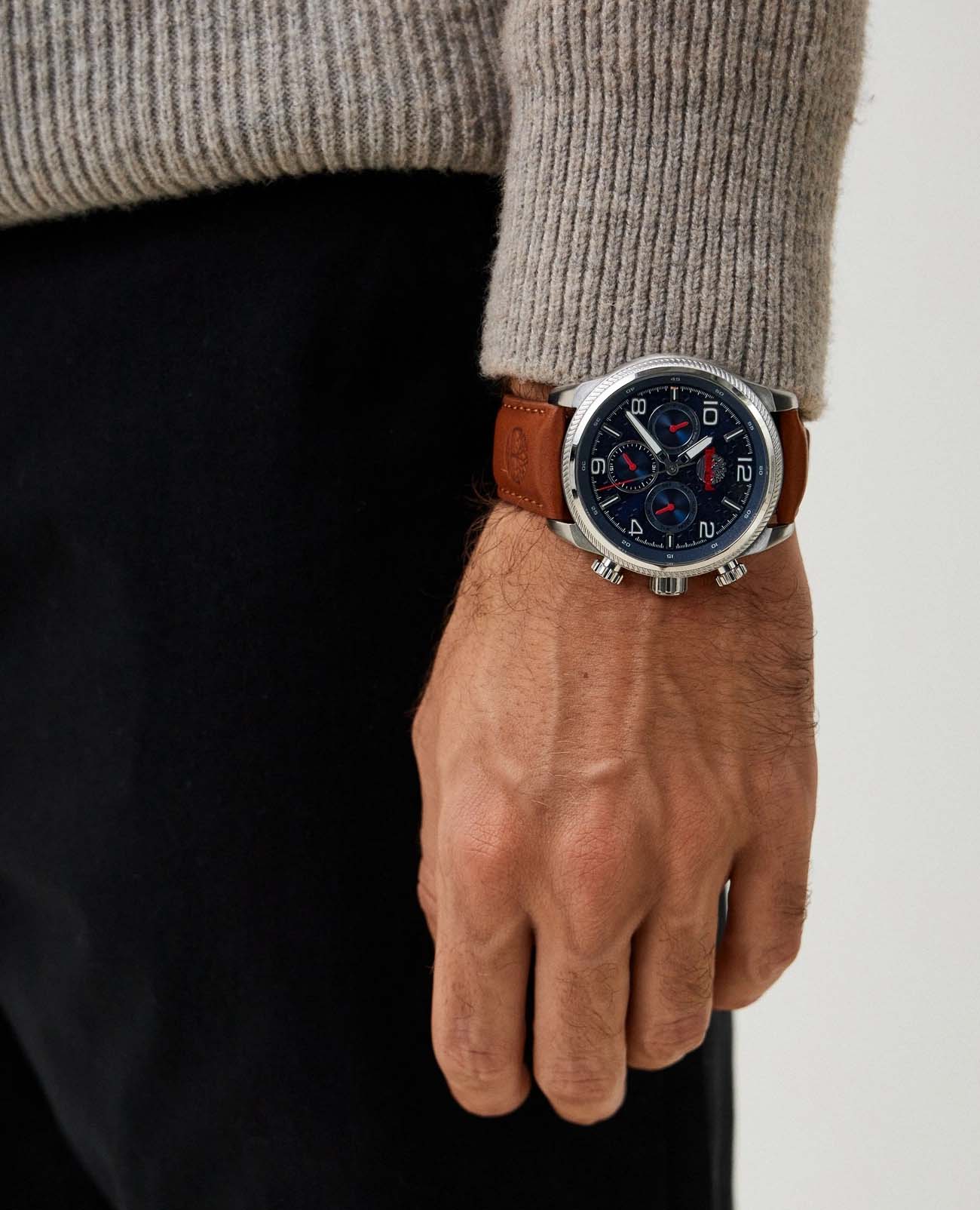 Американские мужские часы Timberland Henniker TDWGF0028705 имеют кварцевый механизм с высокой точностью. Класс водозащиты: 50 метров, позволит защитить корпус от случайных брызг или капель дождя. Корпус часов изготовлен из стали. Прочное минеральное стеклоМинеральное стеклоМинеральное стекло представляет собой искусственно выращенный минерал кварца. Такое стекло отличается особой устойчивостью к повреждениям и царапинам. Уступает по некоторым качествам сапфировому стеклу.. Стрелки c люминесцентным покрытиемЛюминесцентное покрытиеПозволяет считывать показания времени в темноте. Производители наносят на стрелки, часовые индексы, безель или поверхность циферблата светонакопительный состав, дающий холодное свечение.. Кожаный ремешок с классической застежкой и системой быстрой замены. Метки в виде штрихов. 12-ти и 24-х часовой формат времени, число и день недели вынесены на отдельные циферблаты.
