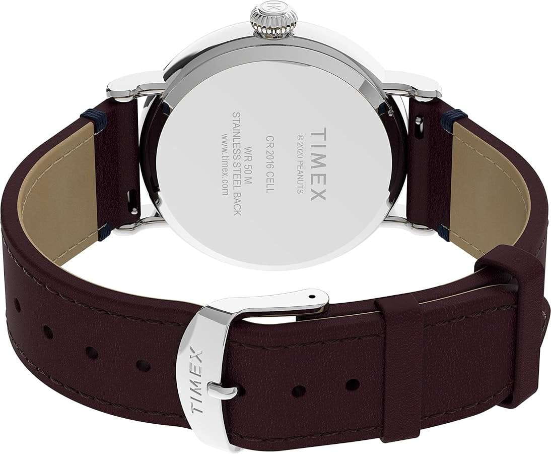 Наручные часы Timex TW2U86500 представляют собой оригинальный аксессуар, идеально подходящий для повседневного использования. Эта модель из США создана специально для поклонников знаменитого комикса «Peanuts» и станет отличным дополнением к образу современной молодежи. Часы оснащены кварцевым механизмом, который обеспечивает точность и надежность. Корпус выполнен из прочной стали, придающей изделию элегантный и стильный вид. Синий циферблат с арабскими цифрами обеспечивает легкость в считывании времени, а рифленая заводная головка добавляет изюминку к общему дизайну. Стрелки часов с люминесцентным покрытиемЛюминесцентное покрытиеПозволяет считывать показания времени в темноте. Производители наносят на стрелки, часовые индексы, безель или поверхность циферблата светонакопительный состав, дающий холодное свечение., что облегчает чтение времени даже в условиях слабого освещения. Кожаный ремешок с классической застежкой обеспечивает комфорт и надежность в ношении. Система быстрой замены ремешка позволяет легко менять его в зависимости от настроения или стиля. Водозащита 50WR защищает часы от влаги, делая их подходящими для активного образа жизни. Минеральное стеклоМинеральное стеклоМинеральное стекло представляет собой искусственно выращенный минерал кварца. Такое стекло отличается особой устойчивостью к повреждениям и царапинам. Уступает по некоторым качествам сапфировому стеклу. защищает циферблат от царапин и повреждений, сохраняя его безупречный вид. Диаметр корпуса составляет 40 мм, а ширина браслета — 20 мм, что делает эти часы акцентным элементом любого образа.
