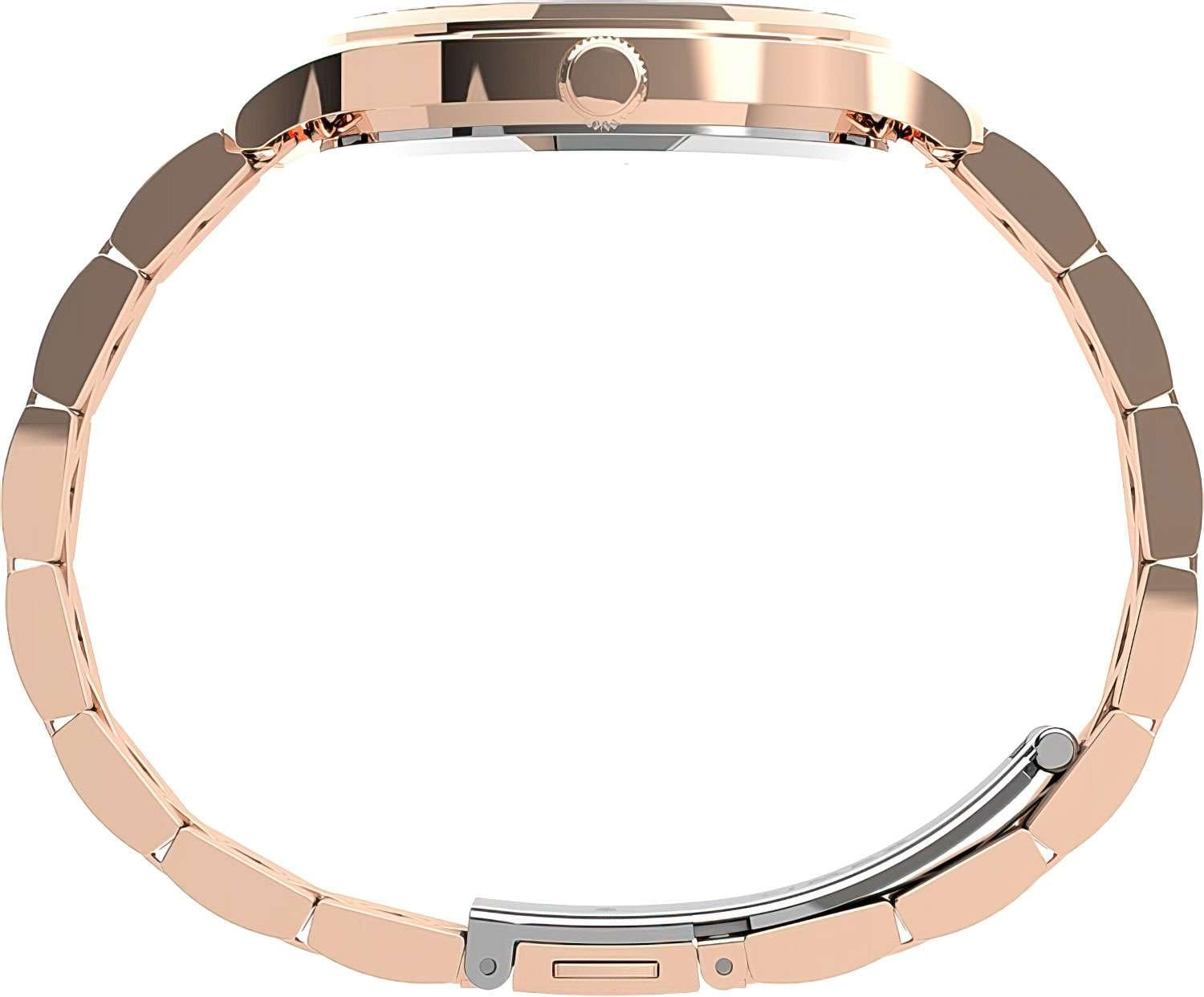 Изысканные часы Timex TW2V23400 станут прекрасным дополнением вашего образа и подчеркнут вашу индивидуальность. Эти часы, разработанные в США, сочетают в себе элегантность и современные технологии. Корпус часов выполнен из латуни с розовым PVDPVDУльтратонкое покрытие наносится в технике вакуумного напыления, сочетает в себе нитрид титана особой прочности со слоем золота или оксида хрома. Несёт в себе декоративную или защитную функцию. покрытием, что придаёт им утончённый и стильный вид. Розовый циферблат сдержанного дизайна украшен метками в виде точек и цветков, что добавляет часам особого шарма. Листовидные стрелки в стиле Feuille подчёркивают изящество дизайна, а отсутствие секундной стрелки делает облик часов ещё более минималистичным. Часы оснащены надёжным кварцевым механизмом, который обеспечивает точный ход и долговечность. Минеральное стеклоМинеральное стеклоМинеральное стекло представляет собой искусственно выращенный минерал кварца. Такое стекло отличается особой устойчивостью к повреждениям и царапинам. Уступает по некоторым качествам сапфировому стеклу. защищает циферблат от царапин и повреждений, сохраняя его первозданный вид на протяжении долгого времени. Рифлёная заводная головка добавляет удобства в использовании. Водозащита 30WR позволяет не беспокоиться о случайных брызгах воды, делая эти часы подходящими для повседневного ношения. Стальной браслет с розовым PVDPVDУльтратонкое покрытие наносится в технике вакуумного напыления, сочетает в себе нитрид титана особой прочности со слоем золота или оксида хрома. Несёт в себе декоративную или защитную функцию. покрытием и раскладной застёжкойРаскладная застёжкаТакой тип застёжки используется только на браслетах из металла. Она никогда не раскрывается полностью, происходит разделение на 2 и более частей. Раскладывающая застёжка снизит вероятность потери часов к минимуму. обеспечивает комфорт и надёжность, прекрасно дополняя общий дизайн часов. С диаметром корпуса 36 мм и шириной браслета 14 мм, эти часы идеально подходят для изящного запястья, становясь акцентом любого наряда. Эти часы — отличный выбор для тех, кто ищет стильный и функциональный аксессуар.