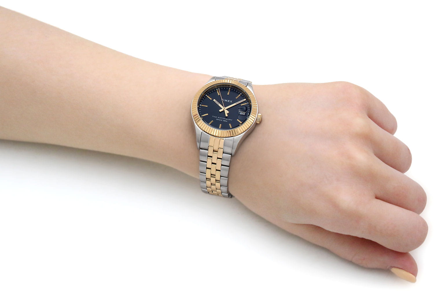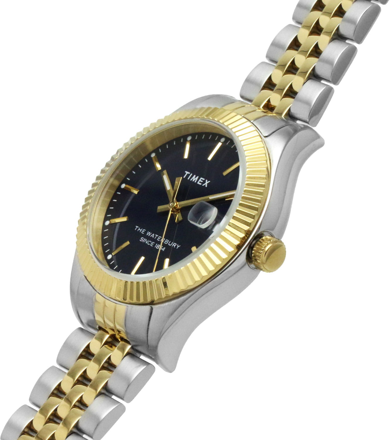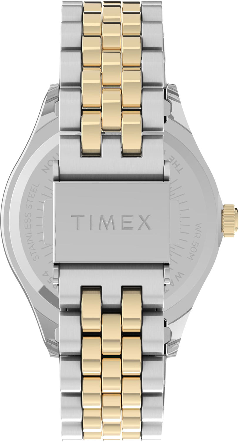 Часы Timex TW2V31600 из коллекции Waterbury Legacy — это элегантный женский аксессуар, который объединяет классический дизайн и современные технологии. Корпус диаметром 34 мм и браслет выполнены из нержавеющей стали с двухцветным серебристо-золотистым PVD-покрытиемPVDУльтратонкое покрытие наносится в технике вакуумного напыления, сочетает в себе нитрид титана особой прочности со слоем золота или оксида хрома. Несёт в себе декоративную или защитную функцию., что придаёт часам утончённый вид. Синий циферблат с золотистыми стрелками и индексами защищён минеральным стекломМинеральное стеклоМинеральное стекло представляет собой искусственно выращенный минерал кварца. Такое стекло отличается особой устойчивостью к повреждениям и царапинам. Уступает по некоторым качествам сапфировому стеклу., устойчивым к царапинам.