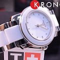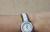 Модель в серебристо-белом оформлении станет изящным украшением к вечернему платью или классическому костюму. Для изготовления часов использовались современные материалы: хирургическая сталь и керамика, отличающаяся гипоаллергенными свойствами. Керамика принимает температурный режим тела человека и обеспечивает комфорт при ношении. Циферблат инкрустирован бриллиантами, имеющими законное происхождение. Кварцевый механизм ETA F03.111. Функция EOLEOLПредставляет собой систему, уведомляющую владельца часов о необходимости замены элемента питания. За 2 недели до полного разряда батарейки секундная стрелка перестаёт ходить чётко и начинает перепрыгивать на 3-4 деления.. Габариты: 28 x 28 x 6,4 мм.