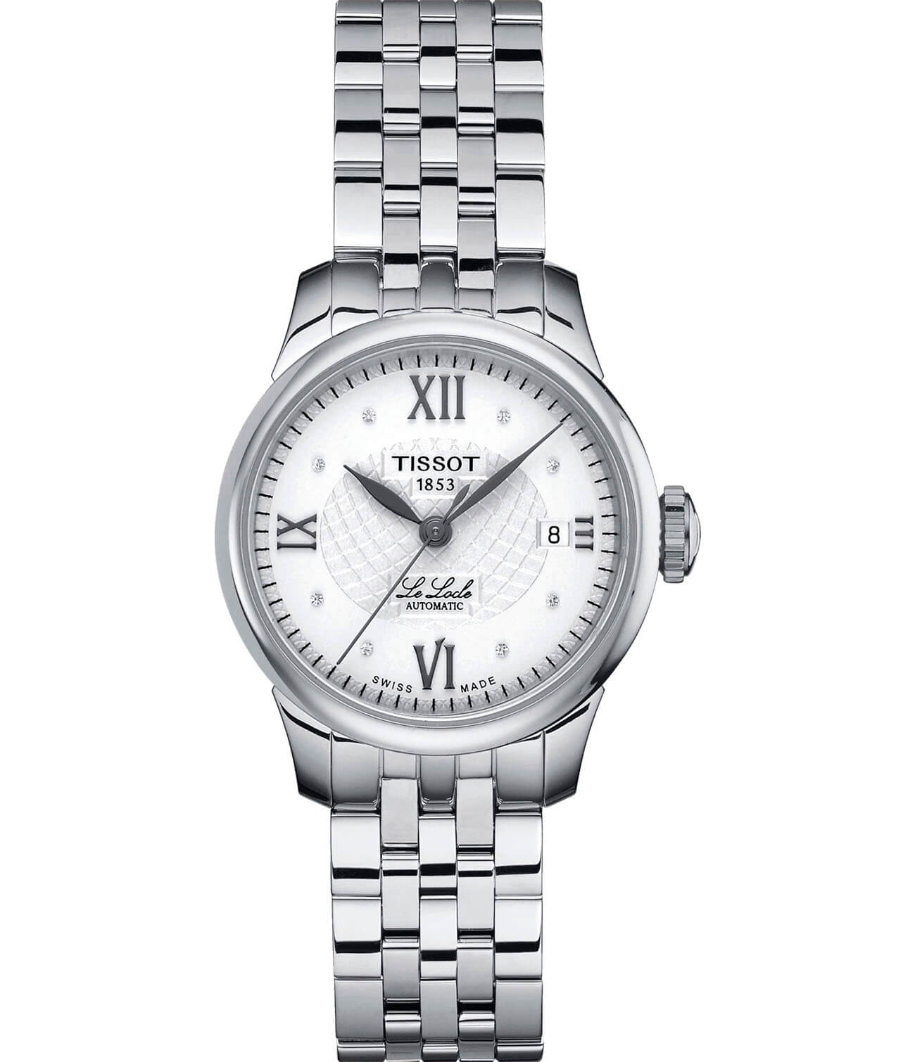 Утончённый стальной браслет и общее лаконичное исполнение модели позволяет не задумываться о подборе цветовых сочетаний в одежде - вы можете выбирать любые наряды. Минималистичный белый циферблат дополнен изящным узором. Механические часы с автоподзаводом оснащены механизмом ETA 2671 с запасом хода 38 часов. Сапфировое стекло противостоит образованию царапин на поверхности. Инкрустация бриллиантами. Индикация текущего числа. . Габариты: 25,3 x 25,3 x 8,4 мм.