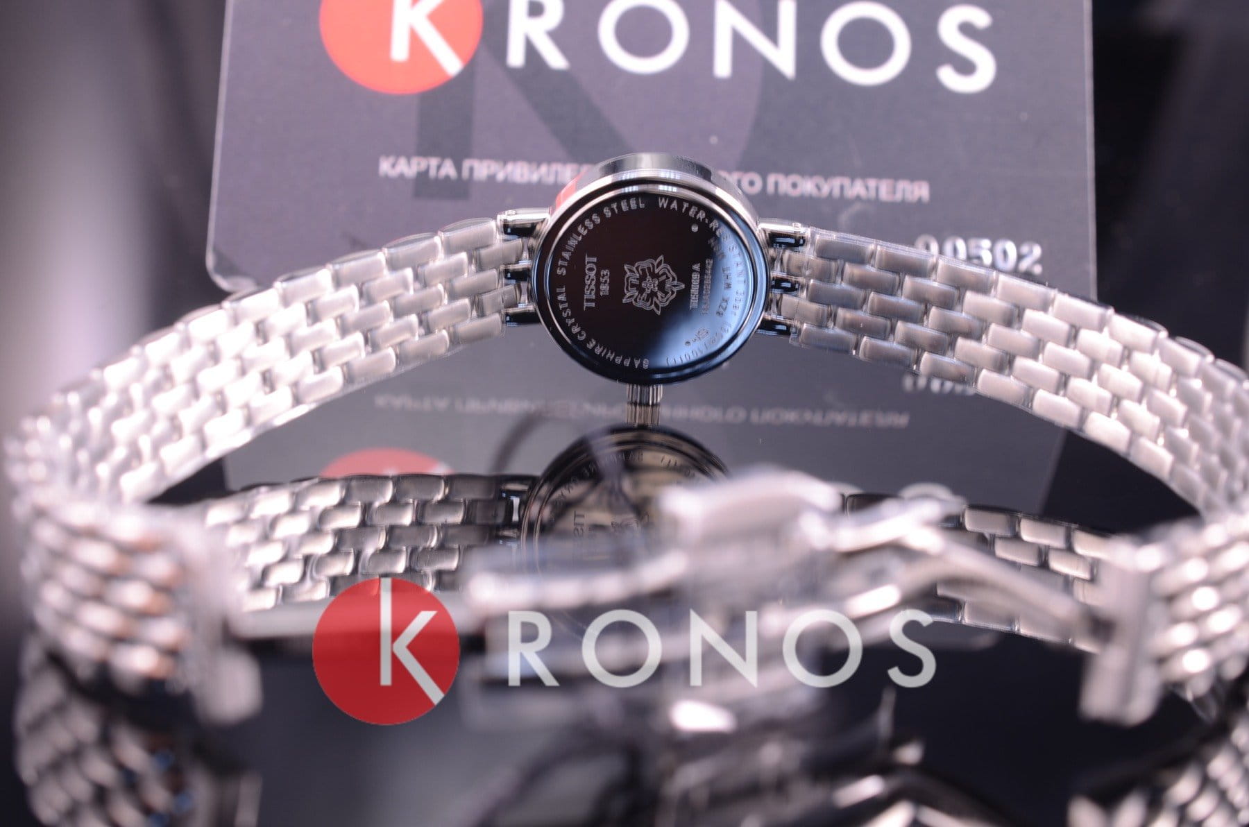 Серебристая модель имеет отличительную особенность - браслет оригинального плетения, который свободно сидит на запястье. Благодаря этому часы выглядят как ювелирное украшение. В остальном аксессуар отличается минимализмом, лаконичный циферблат, тонкие стрелки, отсутствие декора. Кварцевый калибр ETA 901.001 с высокой точностью хода. Сапфировое стекло, устойчивое к появлению царапин на поверхности. Долговечная нержавеющая сталь. Габариты: 19,5 x 19,5 x 5 мм.