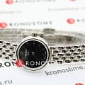 Акцент сделан на компактном циферблате чёрного цвета, строгий оттенок идеально сочетается с серебристым цветом браслета оригинального плетения. Часы не нуждаются в регулярном заводе, работают за счёт кварцевого высокоточного механизма ETA 901.001. Тонкий корпус из нержавеющей стали. Задняя крышка с гравировкой. Надёжное сапфировое стекло. Габариты: 19,5 x 19,5 x 5 мм.