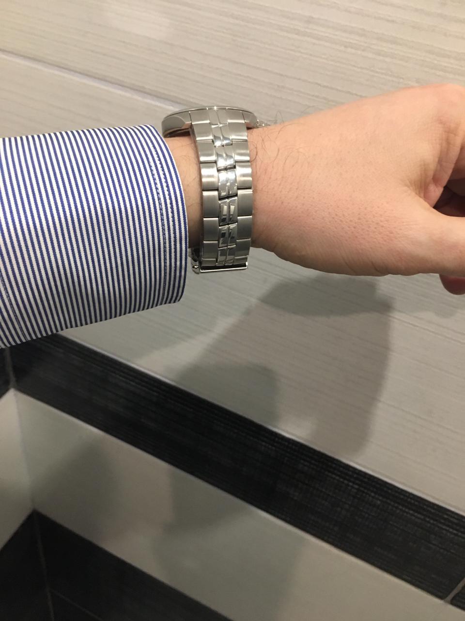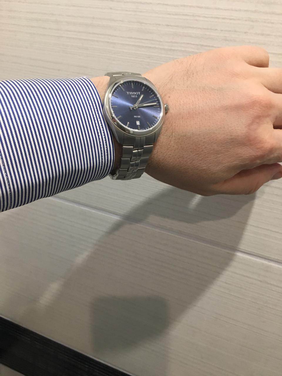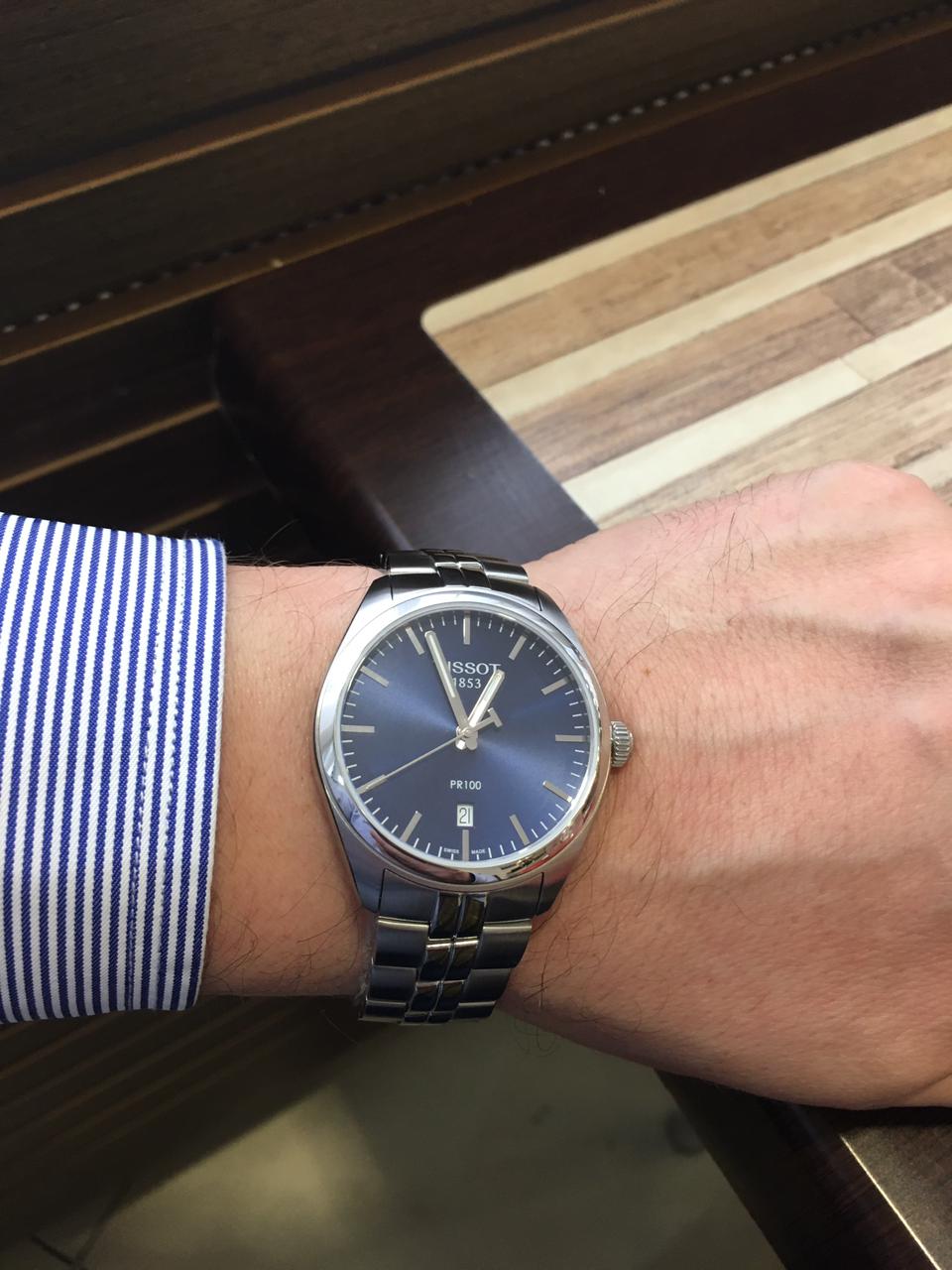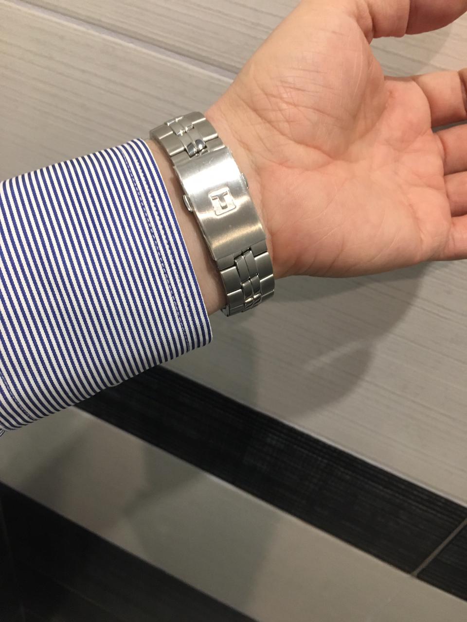 Номер заказа 24565. Однозначно рекомендую к покупке эту модель! Расскажу как выбирал. До них больше 20 лет носил, пока не встали, японские Ориент с автоподзаводом. От старости на них даже хром начал слазить, но они шли! Но у них несколько раз приходилось регулировать точность хода то в «+», то в «-», особенность механики. «На выход» есть позолоченные кварцевые Тиссо Баллад. Точность хода кварца устраивает, регулировать не нужно. Было решено на замену первым приобрести кварц на каждый день, Швейцария, скорее Тиссо. Тоже у меня проверенный временем бренд. Учитывать пришлось несколько факторов: 1. любое покрытие от ежедневной носки неизбежно будет стираться; 2. хронографом никто не пользуется по назначению, он нужен только для красоты, усложняет механизм, более дорогой в ремонте; 3. я офисный работник. В результате выбор был сделан в пользу этой модели! Красивые, стильные, классика, без хронографа, на нержавейке, кварц. Пойдёт и под пиджак в офисе и спортивную одежду. Размер-то, что нужно-не маленькие и не огромные! Время и дата считываются легко! (На хронографе опять же читается хуже). После Ориента мне не хватает дня недели на циферблате, но не критично-привыкну! Тяжелее, чем титан, но тоже некритично, переплачивать смысла нет.  Цвет циферблата «белый» мне показался простым, «чёрный» - скучным. Мне больше понравился темно-синий. Хотя, конечно, на вкус и цвет... По качеству говорить рано-только купил! Остаётся только надеяться на Швейцарское качество и долговечность. Хотя повсеместно, к сожалению, сейчас идёт удешевление и упрощение конструкций. А мне сравнить есть с чем! Итог - на данном этапе рекомендую к покупке.