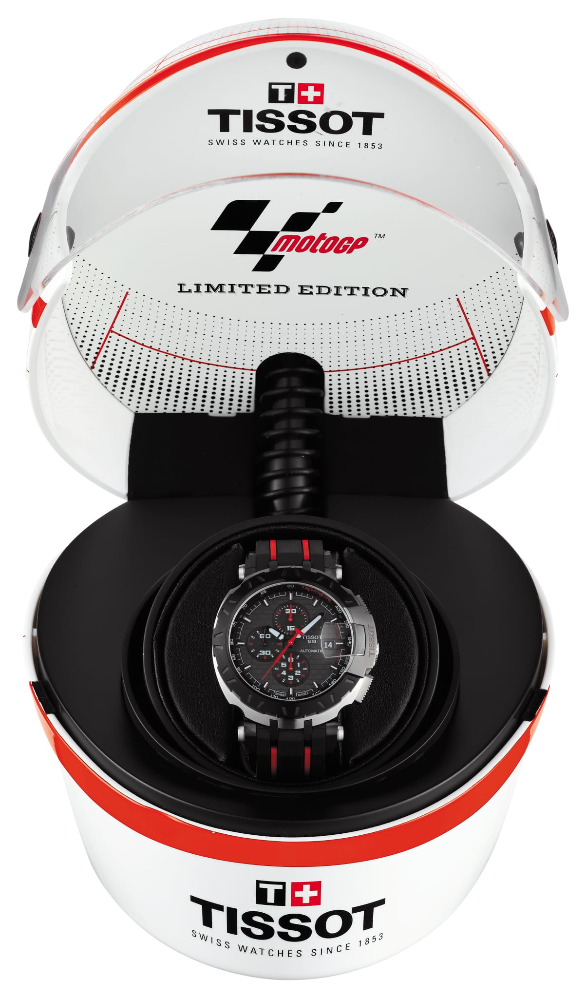 TISSOT T0924272706100 - мужские механические наручные часы Корпус этих часов крупного размера (45 мм) и выполнен из нержавеющей стали L316 Модель T0924272706100 имеет устойчивое к царапинам сапфировое стекло, ремешок из натурального каучука черного цвета, черный циферблат Калибр механизма: ETA G10211 Класс водозащиты: 100 м / 10 АТМ (разрешается плавание и ныряние без акваланга) Дополнительные функции и особенности: отображение числа, хронограф (секундомер) Ограниченная серия MotoGP Limited Edition Полная заводская комплектация TISSOT: оригинальные часы, фирменная коробка, инструкция, сервисная книжка, роман о часовой фабрике, миникаталог, замшевый фирменный чехол черного цвета для хранения и/или переноски часов, кассовый и товарный чеки Международная гарантия 2 года Производство и сборка: Швейцария