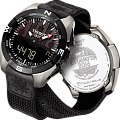 TISSOT T0914204605102 - мужские кварцевые наручные часы Корпус этих часов крупного размера (45 мм) и выполнен из титана металлического цвета Модель T0914204605102 имеет устойчивое к царапинам сапфировое стекло,тканевый ремешок, черный циферблат Калибр механизма: ETA E84301 Класс водозащиты: 100 м / 10 АТМ (разрешается плавание и ныряние без акваланга) Дополнительные функции и особенности: отображение числа, отображение дня недели, полностью автоматический календарь, второе время (GMT), будильник, хронограф (секундомер), таймер (обратный отсчет), яхт-таймер, барометр (атмосферное давление), альтиметр (высота над уровнем моря: зависит от показаний барометра), компас, индикатор запаса хода, сенсорный дисплей, питание от солнечной энергии Полная заводская комплектация TISSOT: оригинальные часы, фирменная коробка, инструкция, сервисная книжка, роман о часовой фабрике, миникаталог, замшевый фирменный чехол черного цвета для хранения и/или переноски часов, кассовый и товарный чеки Международная гарантия 2 года Производство и сборка: Швейцария