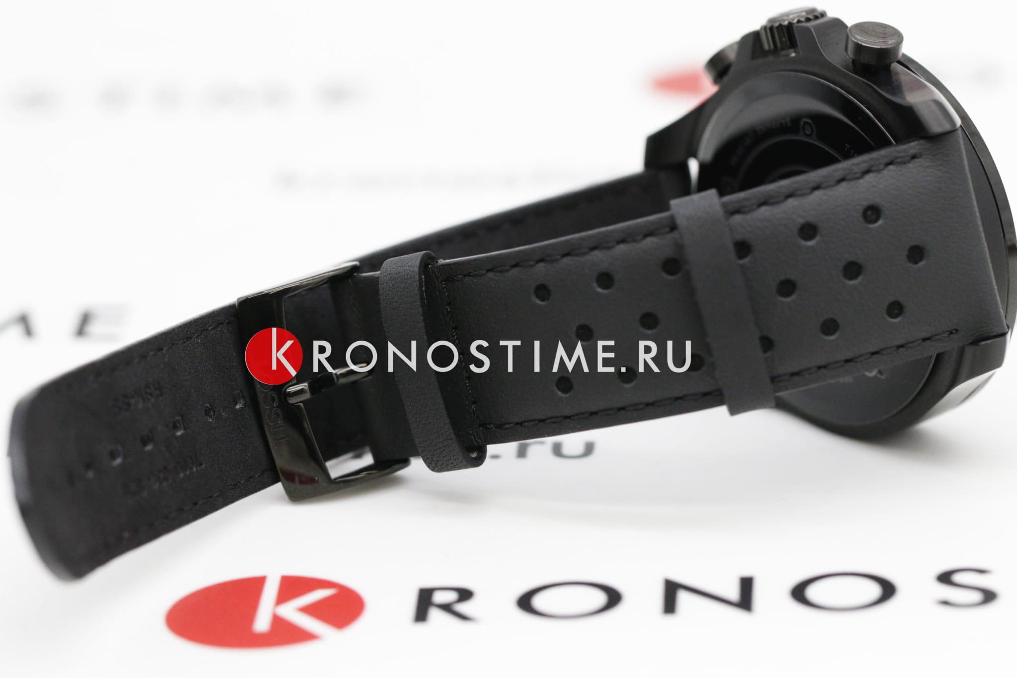 Стильный аксессуар полностью выполнен в чёрном цвете, исключение составляют лишь серебристые часовые метки и стрелки, а также ободок счётчиков хронографаХронографФункция позволяет измерять отрезки времени с особой точностью: часы, минуты, секунды. Верным признаком хронографа является наличие на циферблате 3 дополнительных окошек-счётчиков.. Подобный дизайн считается универсальным, что делает возможным носить часы с любой одеждой. Кварцевый механизм ETA G10.212. PVD-покрытиеPVDУльтратонкое покрытие наносится в технике вакуумного напыления, сочетает в себе нитрид титана особой прочности со слоем золота или оксида хрома. Несёт в себе декоративную или защитную функцию. корпуса. Люминесцентная подсветкаЛюминесцентное покрытиеПозволяет считывать показания времени в темноте. Производители наносят на стрелки, часовые индексы, безель или поверхность циферблата светонакопительный состав, дающий холодное свечение.. Опции: секундомер, тахиметрТахиметрРазмеченная шкала, располагается на ободке или безеле часов. Тахиметр позволяет рассчитать скорость на определённом участке пути, расстояние измеряется в километрах или милях., индикация даты. Габариты: 42,5 x 42,5 x 11,2 мм.
