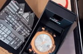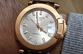 Прозрачная задняя крышка, окошко даты с увеличительным стеклом, PVD-покрытие цвета "розовое золото".
