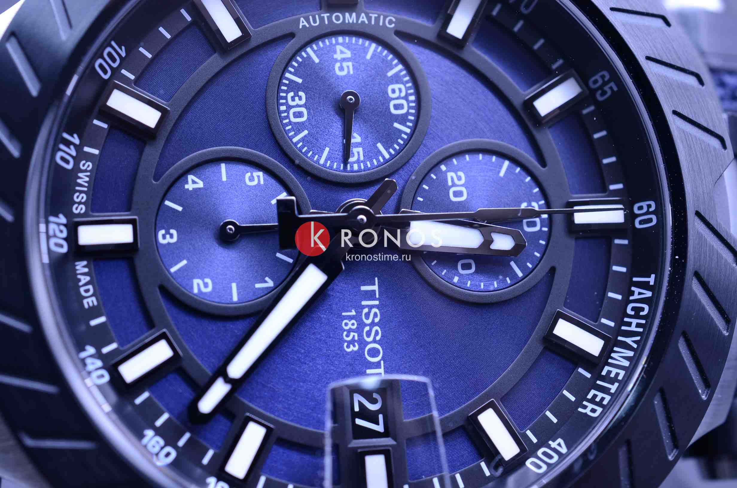 БезельБезельВнешний ободок, закрепляющий стекло. В спортивных часах так называется поворотное кольцо с делениями на циферблате, выполняет роль таймера – замеряет отрезки времени на шкале. Неподвижный безель – элемент декора. Однонаправленно вращающийся безель на дайверских часах позволяет фиксировать моменты погружения и выныривания на поверхность. выполнен в образе тормозного диска, чёрный цвет сочетается с синими переливами массивного циферблата со счётчиками хронографаХронографФункция позволяет измерять отрезки времени с особой точностью: часы, минуты, секунды. Верным признаком хронографа является наличие на циферблате 3 дополнительных окошек-счётчиков.. Задняя крышка сделана в виде колеса. Механические часы с автоподзаводом оснащены швейцарским механизмом C01.211, сохраняющим запас хода до 40 часов. Корпус из долговечной стали 316L с PVD-покрытиемPVDУльтратонкое покрытие наносится в технике вакуумного напыления, сочетает в себе нитрид титана особой прочности со слоем золота или оксида хрома. Несёт в себе декоративную или защитную функцию.. Ремешок из каучука и натуральной кожи. Секундомер, календарь, тахиметрТахиметрРазмеченная шкала, располагается на ободке или безеле часов. Тахиметр позволяет рассчитать скорость на определённом участке пути, расстояние измеряется в километрах или милях.. Габариты: 48,8 x 45 x 16,6 мм.