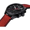 Часы привлекают броским спортивным дизайном, расставлены красные акценты в виде тонкой секундной стрелки и стрелок счётчика хронографаХронографФункция позволяет измерять отрезки времени с особой точностью: часы, минуты, секунды. Верным признаком хронографа является наличие на циферблате 3 дополнительных окошек-счётчиков.. Они посвящаются 18-му чемпионату мира по баскетболу под эгидой ФИБА, о чём рассказывает и логотип на задней крышке. Оригинальный ремешок из натуральной кожи напоминает нам о баскетбольных мячах. Кварцевый механизм ETA G10.212. Водонепроницаемость 10 бар. Чёрное PVD-покрытиеPVDУльтратонкое покрытие наносится в технике вакуумного напыления, сочетает в себе нитрид титана особой прочности со слоем золота или оксида хрома. Несёт в себе декоративную или защитную функцию. корпуса. Надёжное сапфировое стекло. Габариты: 45 x 45 x 12,5 мм.