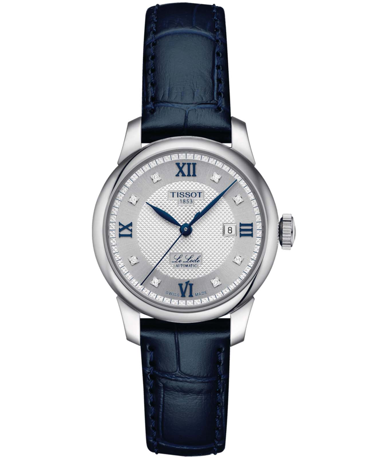 Женские швейцарские наручные часы Tissot Le Locle Automatic Lady T006.207.11.036.01 с надёжным автоматическим механизмом. Корпус часов изготовлен из нержавеющей стали 316L. Циферблат инкрустирован бриллиантами в 0,0104 карат, роскошное сияние драгоценных камней добавляет эксклюзивности. Швейцарский автоматический калибр ETA 2671 с запасом хода 38 часов. Сапфировое стеклоСапфировое стеклоПрочный и надёжный материал из кристалла сапфира синтетического происхождения, характеризующийся особой твёрдостью и устойчивостью к царапинам и повреждениям. устойчивое к возникновению царапин. Стальной браслет на . Окошко даты находится в положении 3 часа. В комплект входит быстросъемный кожаный ремешок на стандартной застёжке. Производство и сборка: Швейцария.