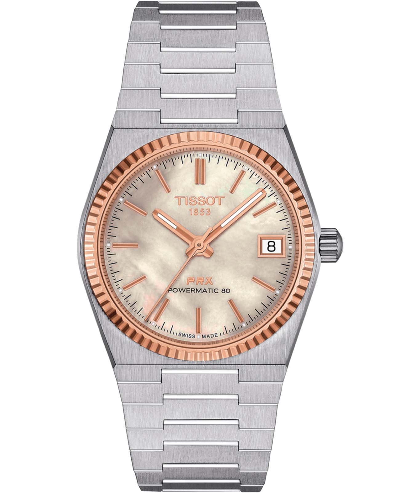 Швейцарские женские механические часы Tissot PRX Powermatic 80 Steel & 18k Gold T931.207.41.111.00