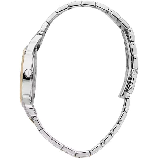 Итальянские женские часы Trussardi T-Bent R2453141503 - это стильный женский аксессуар, который сочетает элегантный дизайн и практичность. Корпус выполнен из нержавеющей стали с безелемБезельВнешний ободок, закрепляющий стекло. В спортивных часах так называется поворотное кольцо с делениями на циферблате, выполняет роль таймера – замеряет отрезки времени на шкале. Неподвижный безель – элемент декора. Однонаправленно вращающийся безель на дайверских часах позволяет фиксировать моменты погружения и выныривания на поверхность. с IP-покрытиемIP-покрытиеМетод ионного напыления. Демонстрирует повышенную устойчивость к истиранию, окислению и химическим веществам. Под воздействием высокого давления и температуры около 1500°C молекулы металла надёжно соединяются с частицами корпуса часов. , что обеспечивает долговечность и утончённый внешний вид. Надежное минеральное стеклоМинеральное стеклоМинеральное стекло представляет собой искусственно выращенный минерал кварца. Такое стекло отличается особой устойчивостью к повреждениям и царапинам. Уступает по некоторым качествам сапфировому стеклу. защищает циферблат от царапин и обеспечивает долговечность. Модель оснащена кварцевым механизмом, обеспечивающим высокую точность хода. Браслет из нержавеющей стали с частичным IP-покрытиемIP-покрытиеМетод ионного напыления. Демонстрирует повышенную устойчивость к истиранию, окислению и химическим веществам. Под воздействием высокого давления и температуры около 1500°C молекулы металла надёжно соединяются с частицами корпуса часов. на раскладной застёжкеРаскладная застёжкаТакой тип застёжки используется только на браслетах из металла. Она никогда не раскрывается полностью, происходит разделение на 2 и более частей. Раскладывающая застёжка снизит вероятность потери часов к минимуму. обеспечивает комфортное ношение. Водозащита 50 метров позволит защитить корпус от случайных брызг или капель дождя. Эта модель – отличный выбор для тех, кто ищет сочетание стиля, качества и функциональности. Часы станут не только полезным аксессуаром, но и выразительным элементом вашего имиджа.