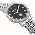Бесподобные женственные часы окутаю вас ювелирной роскошью, доведя образ до совершенства. Стильные часы Vittoria с круглым стальным корпусом дополненным планками V-образной формы. Безель инкрустирован кристаллами Сваровски. Циферблат украшен 3d лого в форме головы льва. Часовые метки в виде арабских цифр и штрихов. Кожаный ремешок с классической застежкой.