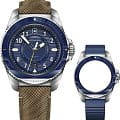 Мужские швейцарские часы Victorinox 241980.1. Сапфировое стеклоСапфировое стеклоПрочный и надёжный материал из кристалла сапфира синтетического происхождения, характеризующийся особой твёрдостью и устойчивостью к царапинам и повреждениям. с трёхслойным антибликовым покрытием. Корпус часов выполнен из титана. Влагозащита: 200 метров, позволит плавать, нырять и заниматься другими водными видами спорта. Стрелки и метки с люминесцентным покрытиемЛюминесцентное покрытиеПозволяет считывать показания времени в темноте. Производители наносят на стрелки, часовые индексы, безель или поверхность циферблата светонакопительный состав, дающий холодное свечение.. В комплекте съемный защитный бампер. В комплекте сменный силиконовый ремешок. Окошко даты находится в положении 6 часов. БезельБезельВнешний ободок, закрепляющий стекло. В спортивных часах так называется поворотное кольцо с делениями на циферблате, выполняет роль таймера – замеряет отрезки времени на шкале. Неподвижный безель – элемент декора. Однонаправленно вращающийся безель на дайверских часах позволяет фиксировать моменты погружения и выныривания на поверхность. с PVD-покрытиемPVDУльтратонкое покрытие наносится в технике вакуумного напыления, сочетает в себе нитрид титана особой прочности со слоем золота или оксида хрома. Несёт в себе декоративную или защитную функцию..