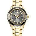 Циферблат защищен закаленным минеральным стекломМинеральное стеклоМинеральное стекло представляет собой искусственно выращенный минерал кварца. Такое стекло отличается особой устойчивостью к повреждениям и царапинам. Уступает по некоторым качествам сапфировому стеклу., что обеспечивает высокую устойчивость к царапинам и повреждениям. Окошко даты расположено в положении 3 часа, делая информацию максимально доступной. БезельБезельВнешний ободок, закрепляющий стекло. В спортивных часах так называется поворотное кольцо с делениями на циферблате, выполняет роль таймера – замеряет отрезки времени на шкале. Неподвижный безель – элемент декора. Однонаправленно вращающийся безель на дайверских часах позволяет фиксировать моменты погружения и выныривания на поверхность. с PVD-покрытиемPVDУльтратонкое покрытие наносится в технике вакуумного напыления, сочетает в себе нитрид титана особой прочности со слоем золота или оксида хрома. Несёт в себе декоративную или защитную функцию..