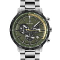 Мужские наручные часы-хронографХронографФункция позволяет измерять отрезки времени с особой точностью: часы, минуты, секунды. Верным признаком хронографа является наличие на циферблате 3 дополнительных окошек-счётчиков. WA.19032-E с надежным кварцевым механизмом. Корпус часов изготовлен из нержавеющей стали 316L. Стальной браслет на застежке "бабочке". Окошко даты находится в между 4 и 5 часами. Сапфировое стеклоСапфировое стеклоПрочный и надёжный материал из кристалла сапфира синтетического происхождения, характеризующийся особой твёрдостью и устойчивостью к царапинам и повреждениям.. Уровень водозащиты: 100 метров, позволит плавать, нырять и заниматься другими водными видами спорта. 12 и 24-часовой формат времени. БезельБезельВнешний ободок, закрепляющий стекло. В спортивных часах так называется поворотное кольцо с делениями на циферблате, выполняет роль таймера – замеряет отрезки времени на шкале. Неподвижный безель – элемент декора. Однонаправленно вращающийся безель на дайверских часах позволяет фиксировать моменты погружения и выныривания на поверхность. с PVD-покрытиемPVDУльтратонкое покрытие наносится в технике вакуумного напыления, сочетает в себе нитрид титана особой прочности со слоем золота или оксида хрома. Несёт в себе декоративную или защитную функцию.. Стрелки с люминесцентным покрытиемЛюминесцентное покрытиеПозволяет считывать показания времени в темноте. Производители наносят на стрелки, часовые индексы, безель или поверхность циферблата светонакопительный состав, дающий холодное свечение.. Встроенный Второй часовой поясВторой часовой поясФункция, позволяющая отображать время двух часовых поясов одновременно., секундомерСекундомерСекундоме́р — прибор, способный измерять интервалы времени с точностью до долей секунды. и тахиметрТахиметрРазмеченная шкала, располагается на ободке или безеле часов. Тахиметр позволяет рассчитать скорость на определённом участке пути, расстояние измеряется в километрах или милях..