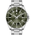 Модель Wainer WA.25540-D сочетает элегантность, швейцарское качество и современный дизайн. Корпус выполнен из нержавеющей стали 316L и безельБезельВнешний ободок, закрепляющий стекло. В спортивных часах так называется поворотное кольцо с делениями на циферблате, выполняет роль таймера – замеряет отрезки времени на шкале. Неподвижный безель – элемент декора. Однонаправленно вращающийся безель на дайверских часах позволяет фиксировать моменты погружения и выныривания на поверхность. с PVD-покрытиемPVDУльтратонкое покрытие наносится в технике вакуумного напыления, сочетает в себе нитрид титана особой прочности со слоем золота или оксида хрома. Несёт в себе декоративную или защитную функцию., подчеркивающим роскошный стиль часов. Циферблат оформлен в сдержанном классическом стиле, а сапфировое стеклоСапфировое стеклоПрочный и надёжный материал из кристалла сапфира синтетического происхождения, характеризующийся особой твёрдостью и устойчивостью к царапинам и повреждениям. защищает его от царапин и механических повреждений, обеспечивая долговечность. Часы оснащены автоматическим механизмом, обеспечивающим надежность и точность хода. Браслет из нержавеющей стали на раскладной застёжкойРаскладная застёжкаТакой тип застёжки используется только на браслетах из металла. Она никогда не раскрывается полностью, происходит разделение на 2 и более частей. Раскладывающая застёжка снизит вероятность потери часов к минимуму. гарантирует комфорт и надежную фиксацию. Водонепроницаемость до 100 метров, позволит плавать, нырять и заниматься другими водными видами спорта. Wainer WA.25540-D — стильный аксессуар для мужчин, ценящих сочетание классики, надежности и утонченного швейцарского качества.